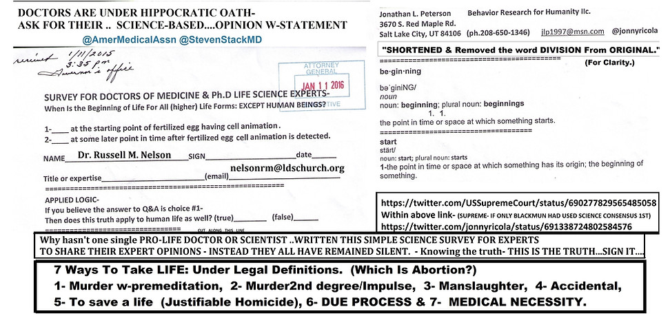 THEY REQUEST Sen. Hatch, Sen. Lee, Rep. Love & others USE THE SCIENCE SURVEY PROOF OF